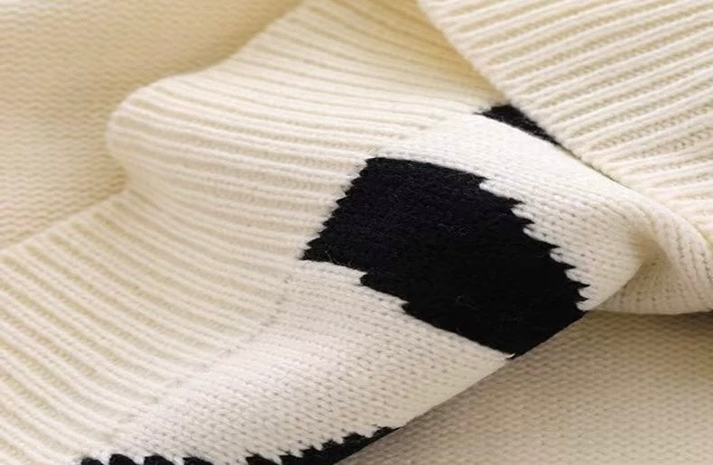 The sweater from Urban Artistry is a real eye-catcher. The black knitted sweater impresses with its striking, abstract pattern in white and black on the front.