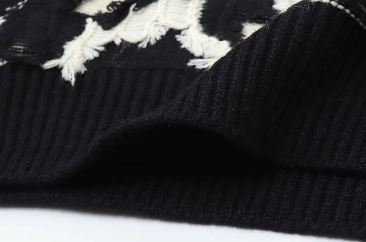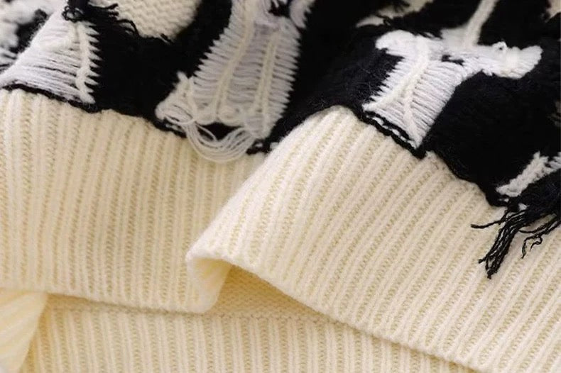 - Unique design: The abstract pattern and frayed design make this sweater a fashion statement.
