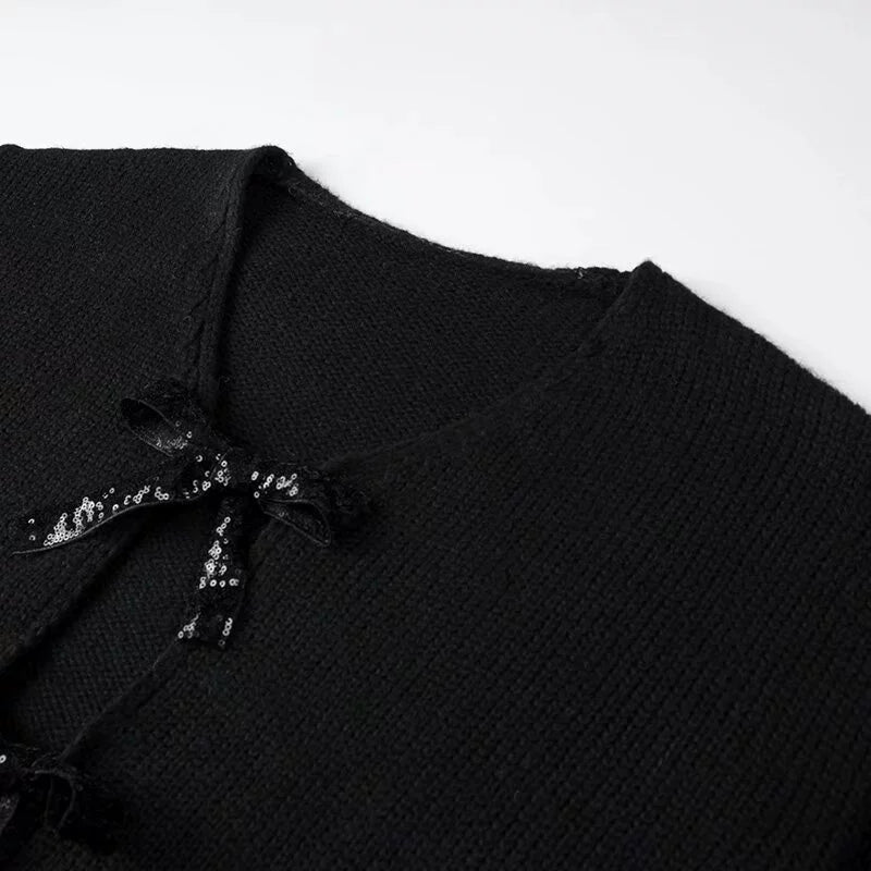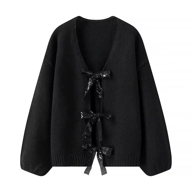 Elegancia a la luz de la luna – Cárdigan con lazos de lentejuelas
